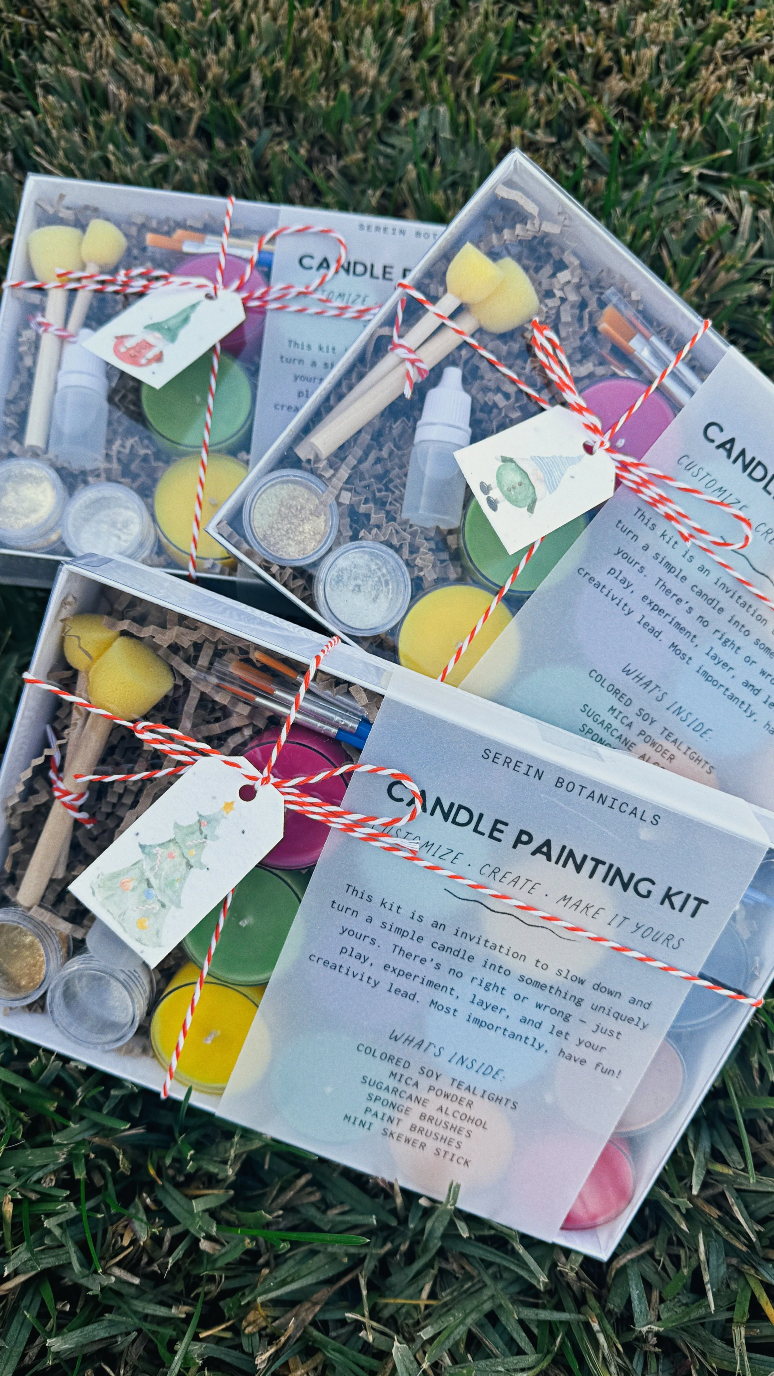 This kit is designed to help you transform a simple candle into a one-of-a-kind piece. There’s no right or wrong — just play, experiment, and let your creativity lead. Whether you’re painting a pillar or taper, cake, a snowman, or something entirely your own, this is an invitation to slow down and enjoy the process.WHAT’S INSIDE